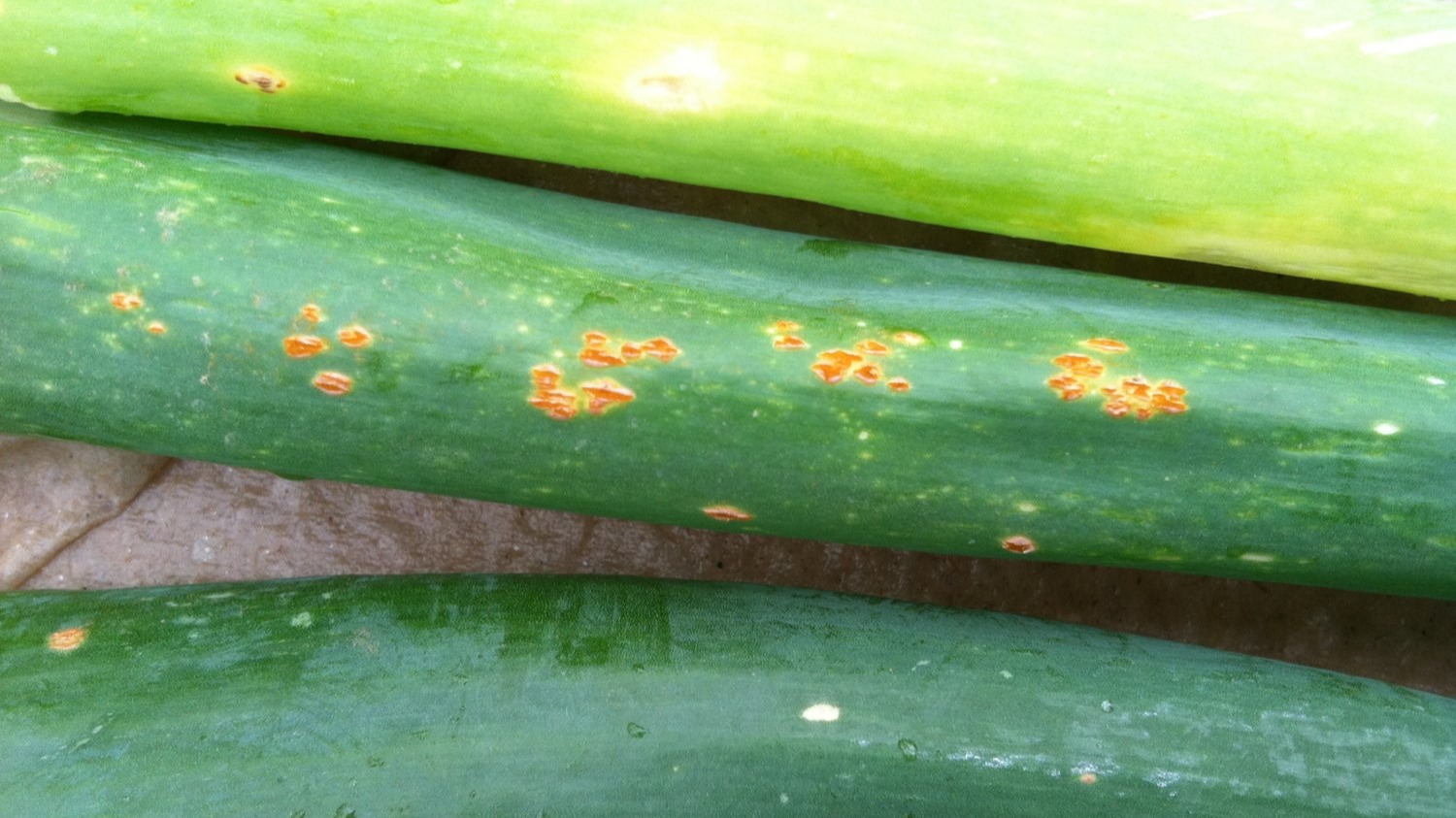 Lesions typically from first on older leaves, and then spread to younger leaves. Symptom begin as small flecks and then reddish airborne spores are produced copiously within the lesions on the leaves. Later in the growing season, the lesions may appear dark because black survival spores develop within the pustules. Severely affected leaves can be completely covered with pustules, turn chlorotic (yellow) and then dry out and die, bulb size and quality are also reduced.