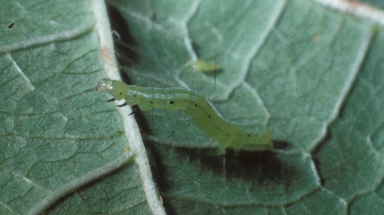This pest can occur throughout the field, but infestations are most severe during the heading and flowering stages. Initially, the larvae feed on the leaves, scraping and skeletonizing them; as they grow, they consume entire leaves, resulting in irregular holes. They also bore into developing heads and flowers, causing direct damage and reducing both yield and market quality.