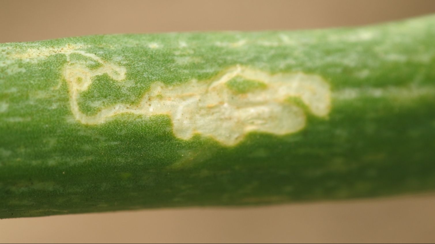 Infestations usually begin shortly after germination or transplanting under warm, moist conditions, often peaking during late spring or early summer. Adult female leaf miners create multiple punctures in the leaf tissue using their ovipositor, and both males and females feed on the resulting plant exudates. These punctures often represent the earliest visible signs of infestation. The larvae subsequently tunnel through the leaf tissue, migrating toward and into the bulbs and leaf sheaths. Both the puncture wounds and mining galleries provide entry points for bacterial and fungal pathogens. As the infestation progresses, larvae or pupae can often be found within the mined areas.